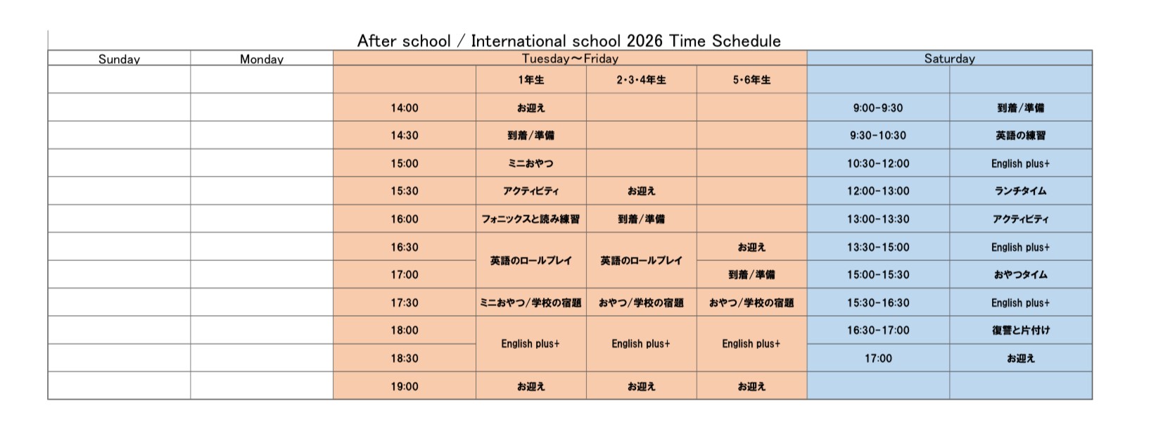 - 放課後プログラム After school 土曜日インターナショナルスクール International school